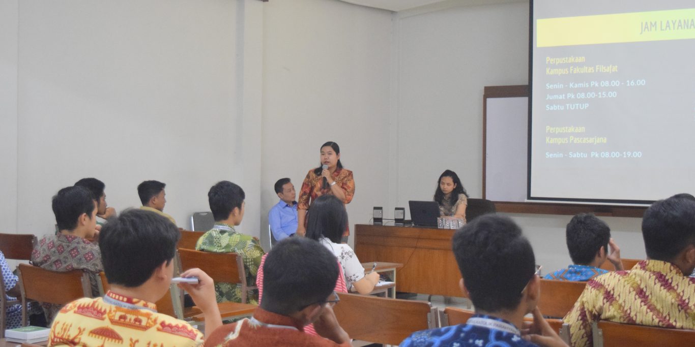 Di masa SIAP, pustakawan UNPAR mengenalkan Perpustakaan kepada mahasiswa baru Fakultas Filsafat, Program Studi Fisika dan Matematika, serta Program Studi Arsitektur.